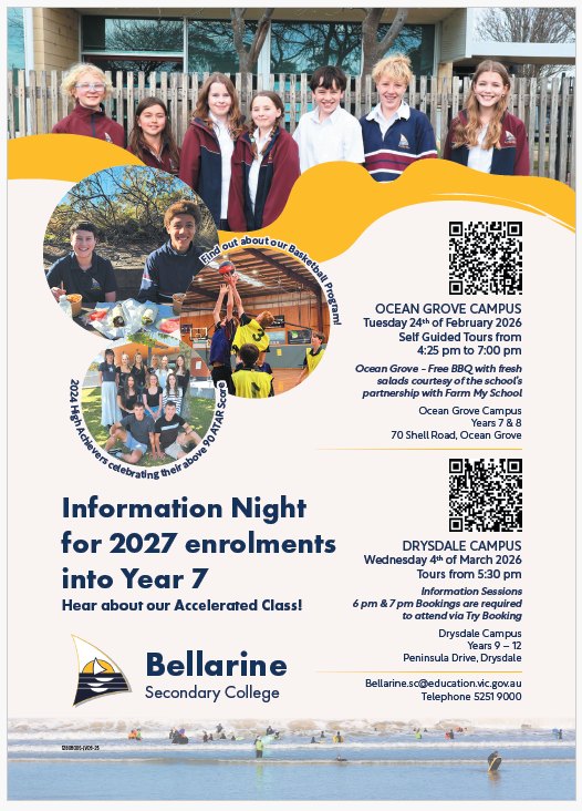 Our College is the product of a long and proud history on the Bellarine Peninsula. Bellarine students are central to all that we do.