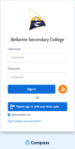 I.E If your Student Code is:  ABCD1234 then this is your Compass Username. DO NOT attempt to login using your email address I.E ABCD1234@bsc.vic.edu.au as this WILL NOT Work.