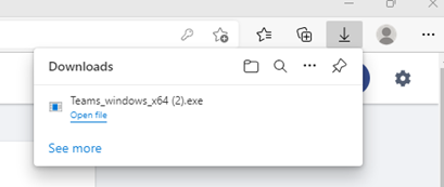 If your using Microsoft Edge, the download will show at the top right-hand side of the page, and when completed, you will need to click on the “open file” option to start the install. Once again, this may take a moment to initialize.