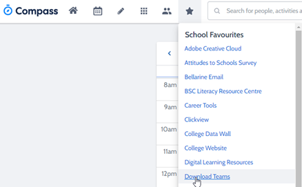 Login to Compass, on the “Star” Icon there is an option to “Download Teams” click on this and the download will start.
